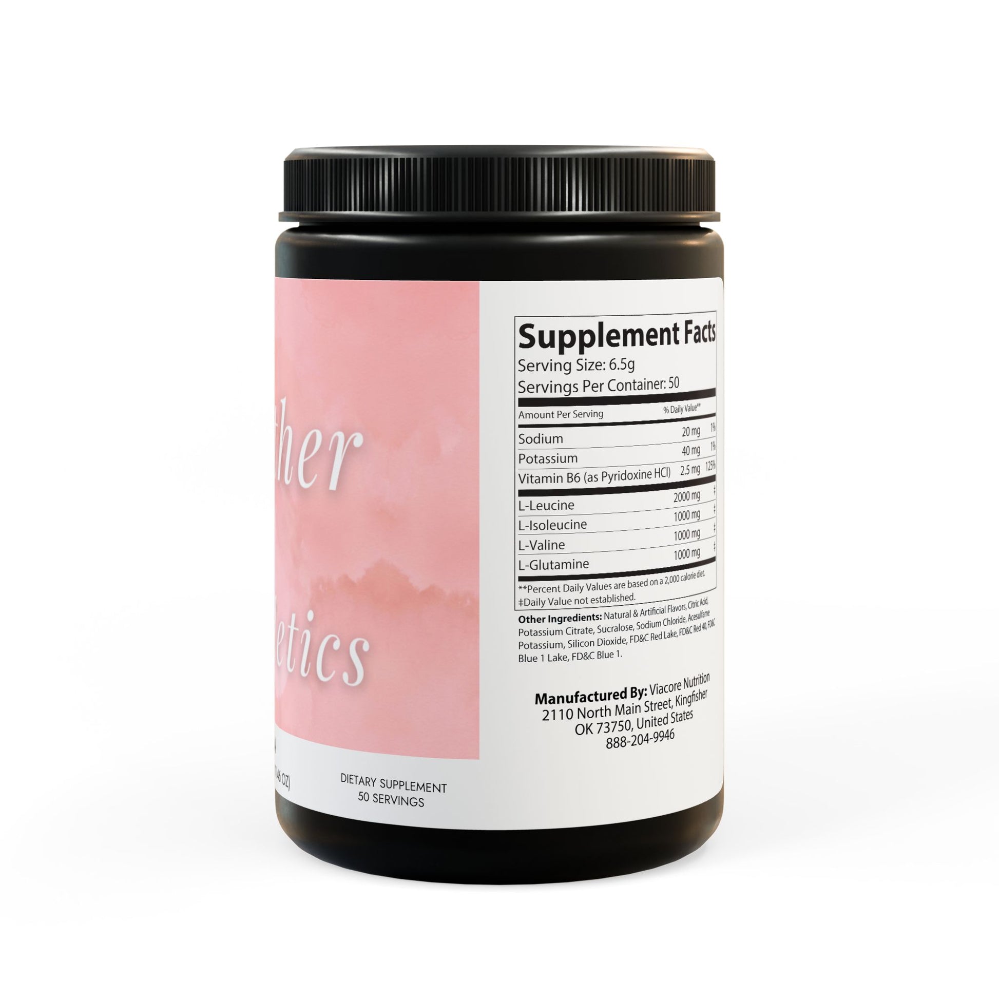 Key ingredients include Sodium, Potassium, Vitamin B6 (as Pyridoxine HCl), L-Leucine, L-Isoleucine, L-Valine, and L-Glutamine.